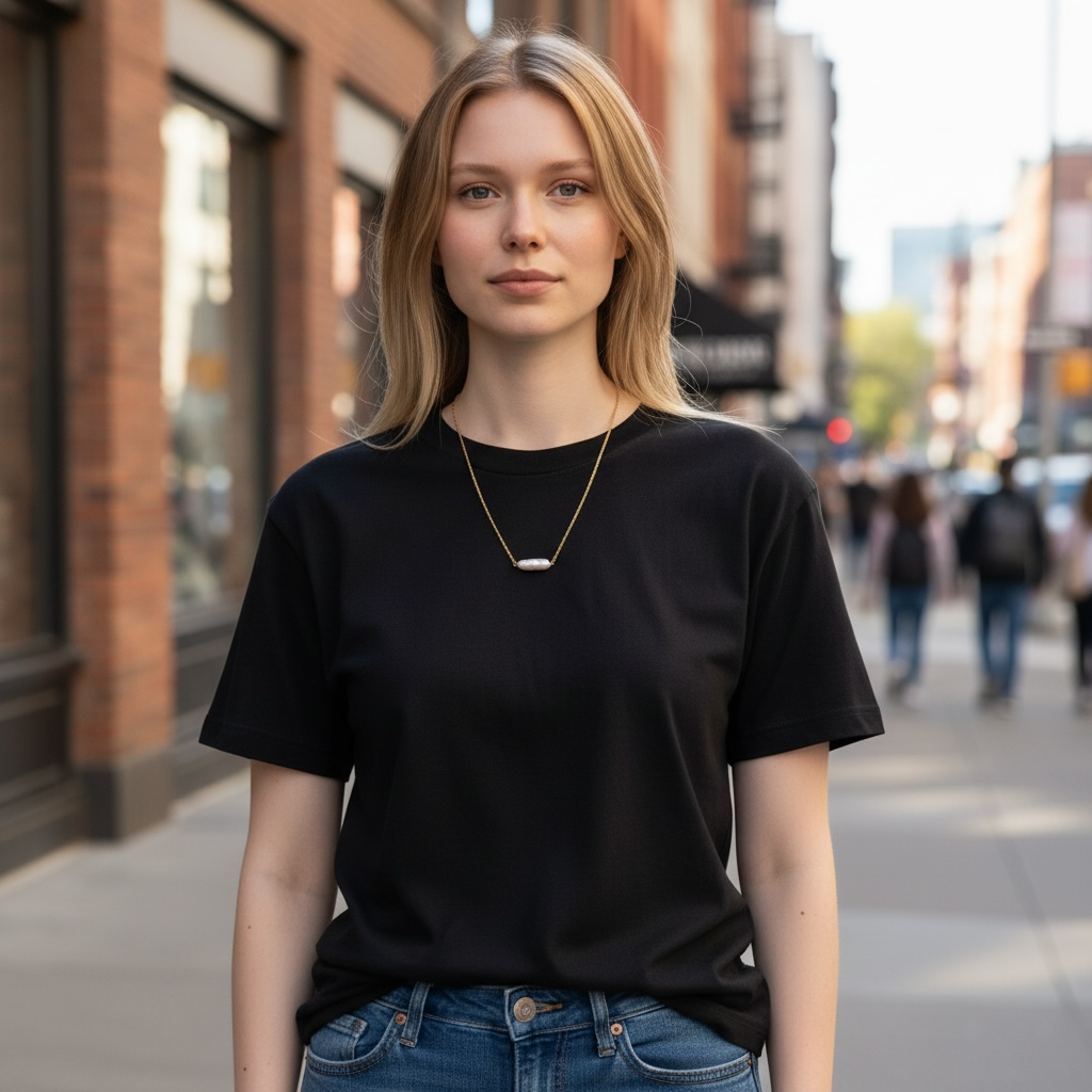 Handcrafted biwa pearl necklace featuring a lustrous, one-of-a-kind pearl suspended on a durable PVD non-tarnish chain. Each piece showcases the natural iridescence and depth that makes biwa pearls prized by jewelry connoisseurs. The PVD coating ensures lasting wear without oxidation, making this an investment-quality accessory that pairs effortlessly with any wardrobe. A statement piece for those who appreciate artisanal craftsmanship and distinctive pearl character.